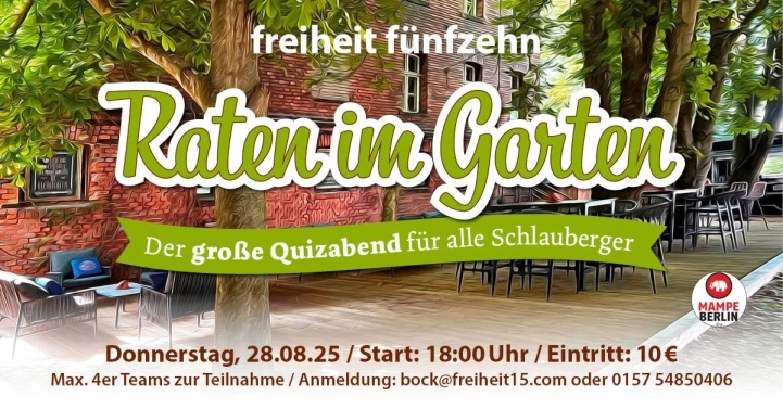 Raten im Garten - Quizabend im Biergarten der freiheit fünfzehn auf unserer neuen Terrasse "Kastanienallee".